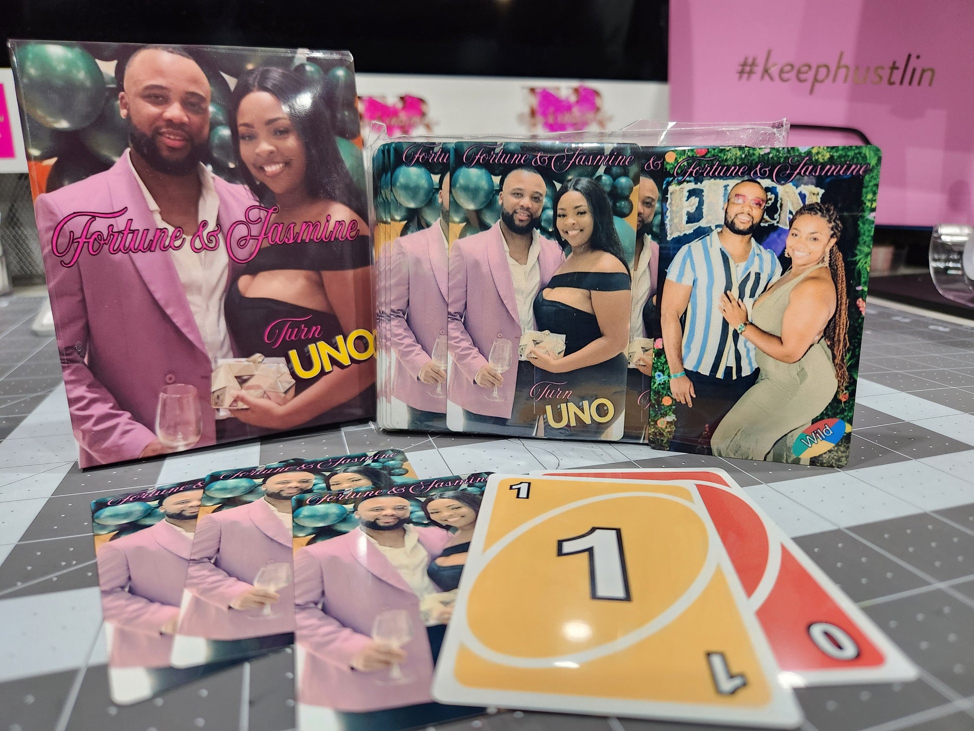 Elevate your game night experience with our Custom UNO Cards, crafted from stunning metallic material for a truly luxurious feel. These cards aren't just for play—they're a personal statement. Each deck features a high-resolution photo of your choice, along with the name of the honoree or a personalized phrase (e.g., "The Browns become UNO").
