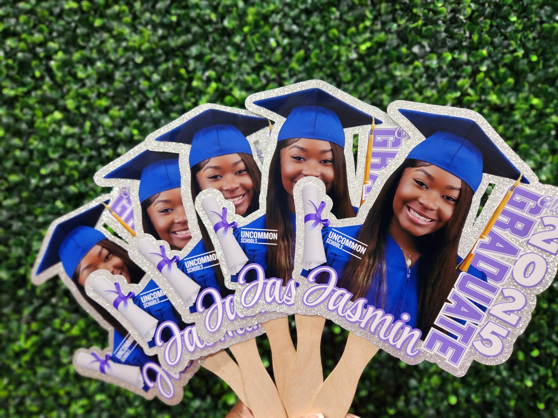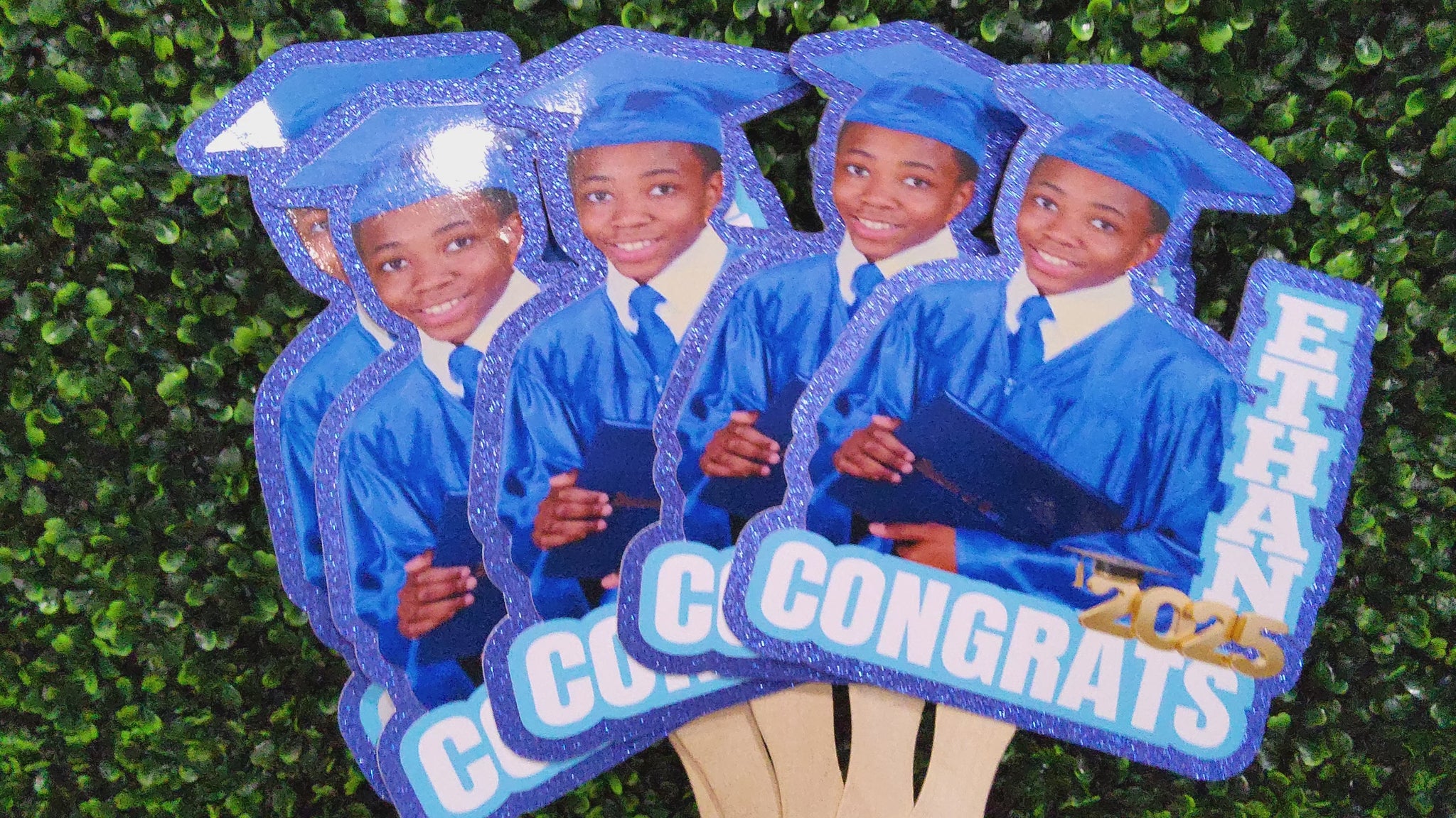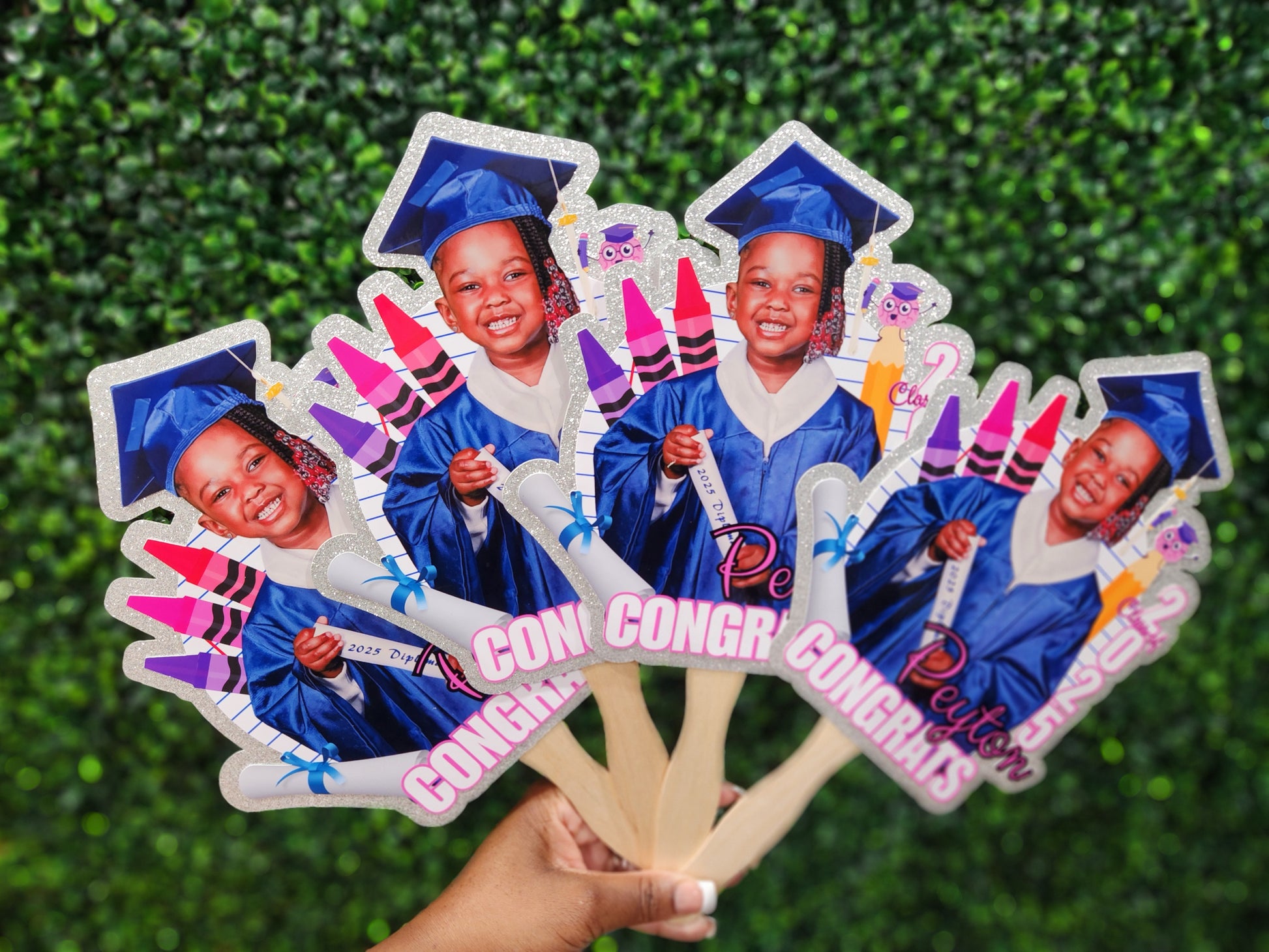 Keep your celebration stylish and meaningful with our Custom Fans, designed for every occasion—graduations, birthdays, weddings, girl’s trips, memorials, and more. Whether you're planning an outdoor event or want a personal keepsake, our fans are the perfect touch of elegance and function.